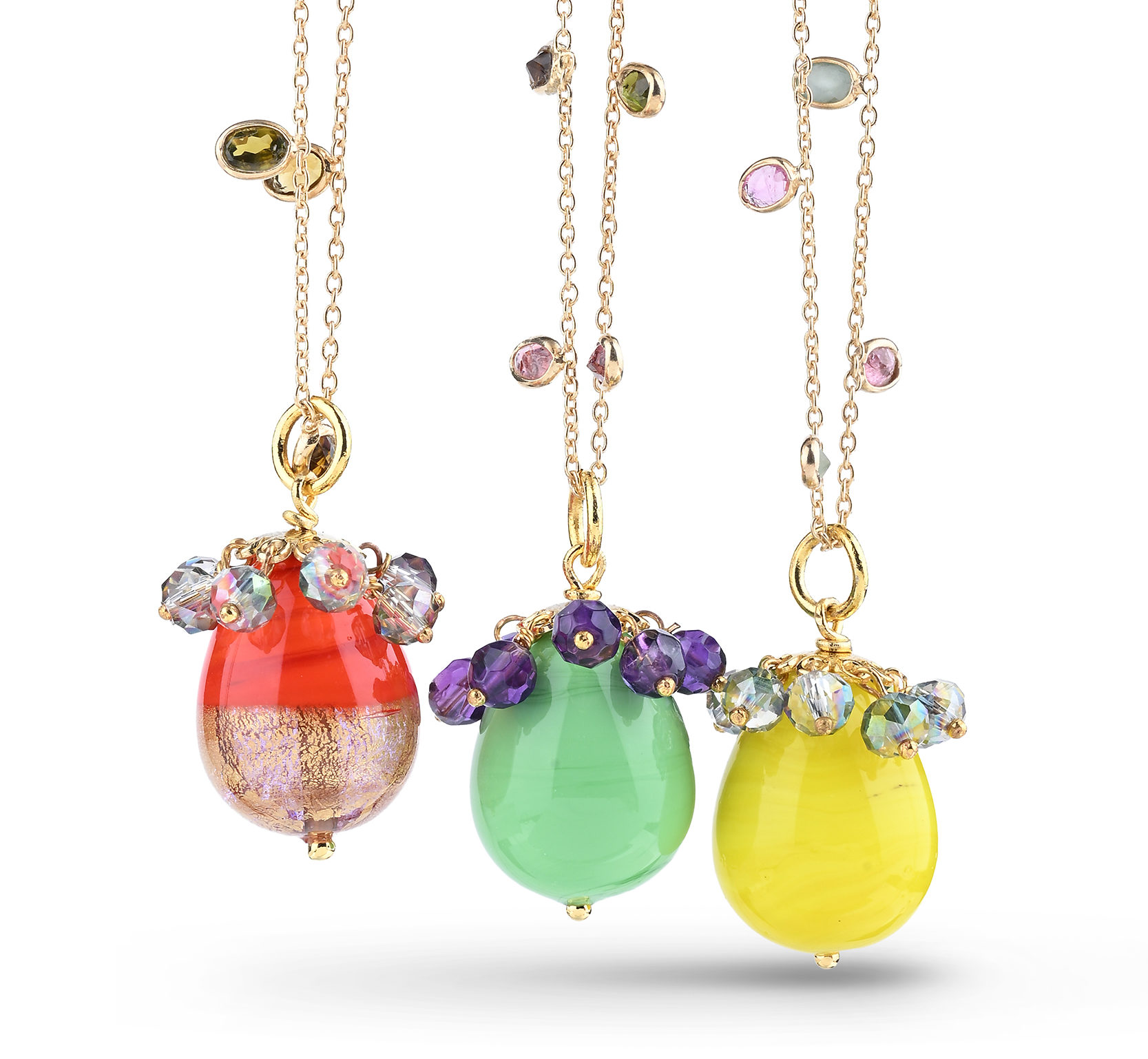 A celebration of color, artistry, and individuality, this exquisite handmade pendant is crafted from layered crystal with meticulous attention to detail. Each piece showcases a rich interplay of vibrant hues and intricate internal patterns, created through a delicate layering process that gives depth, luminosity, and a truly one-of-a-kind character.