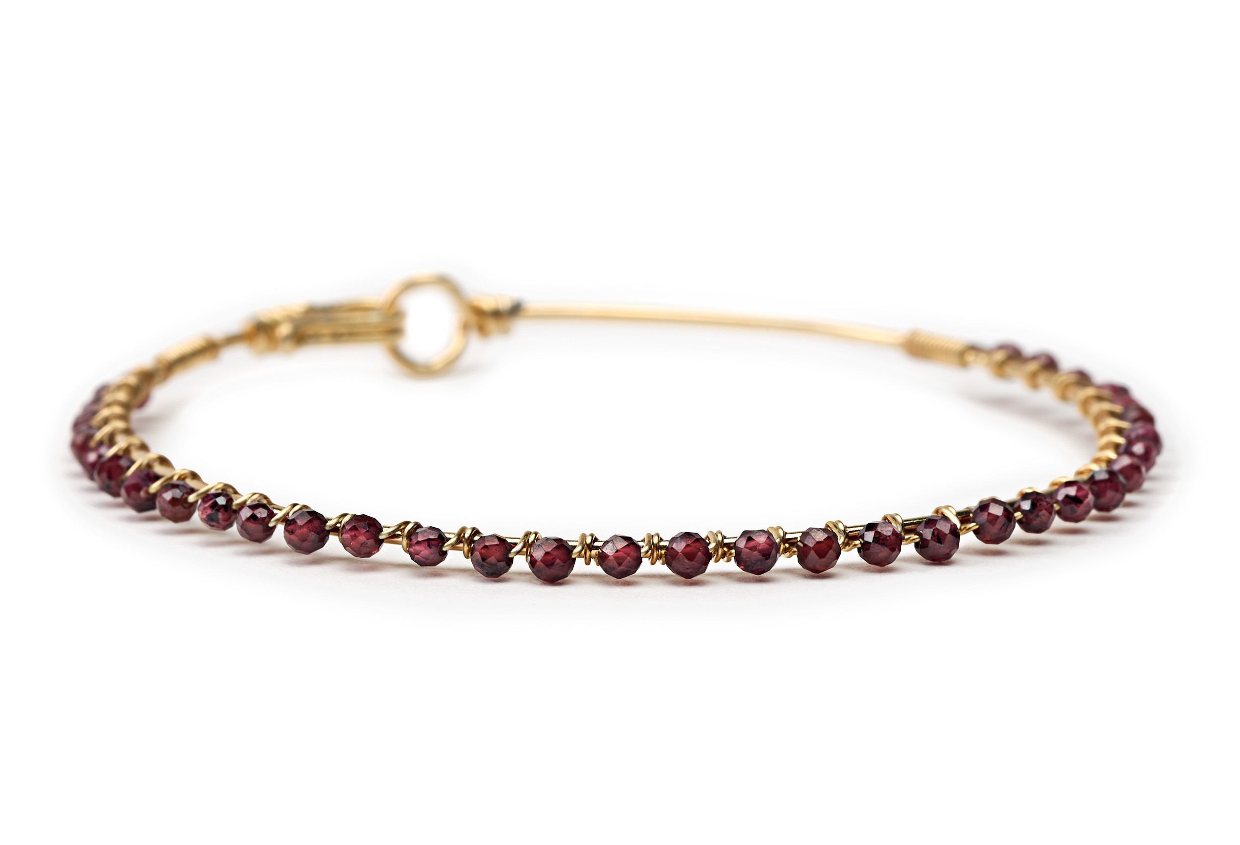 A gold-plated bracelet set with amethyst semi precious stones, rich, refined, and sophisticated.