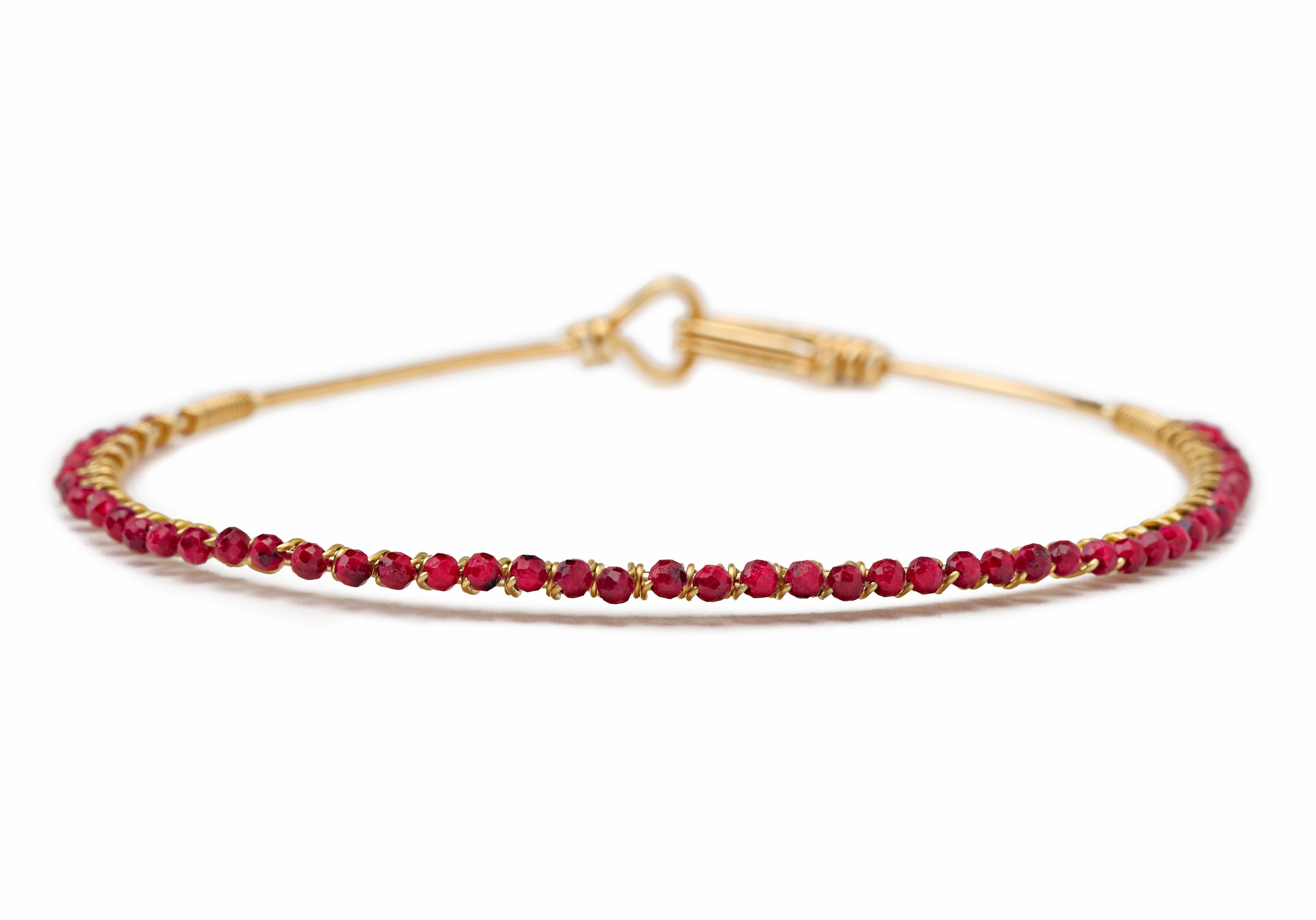 A gold-plated bracelet set with red rubies, rich, refined, and sophisticated, for every day appearances.