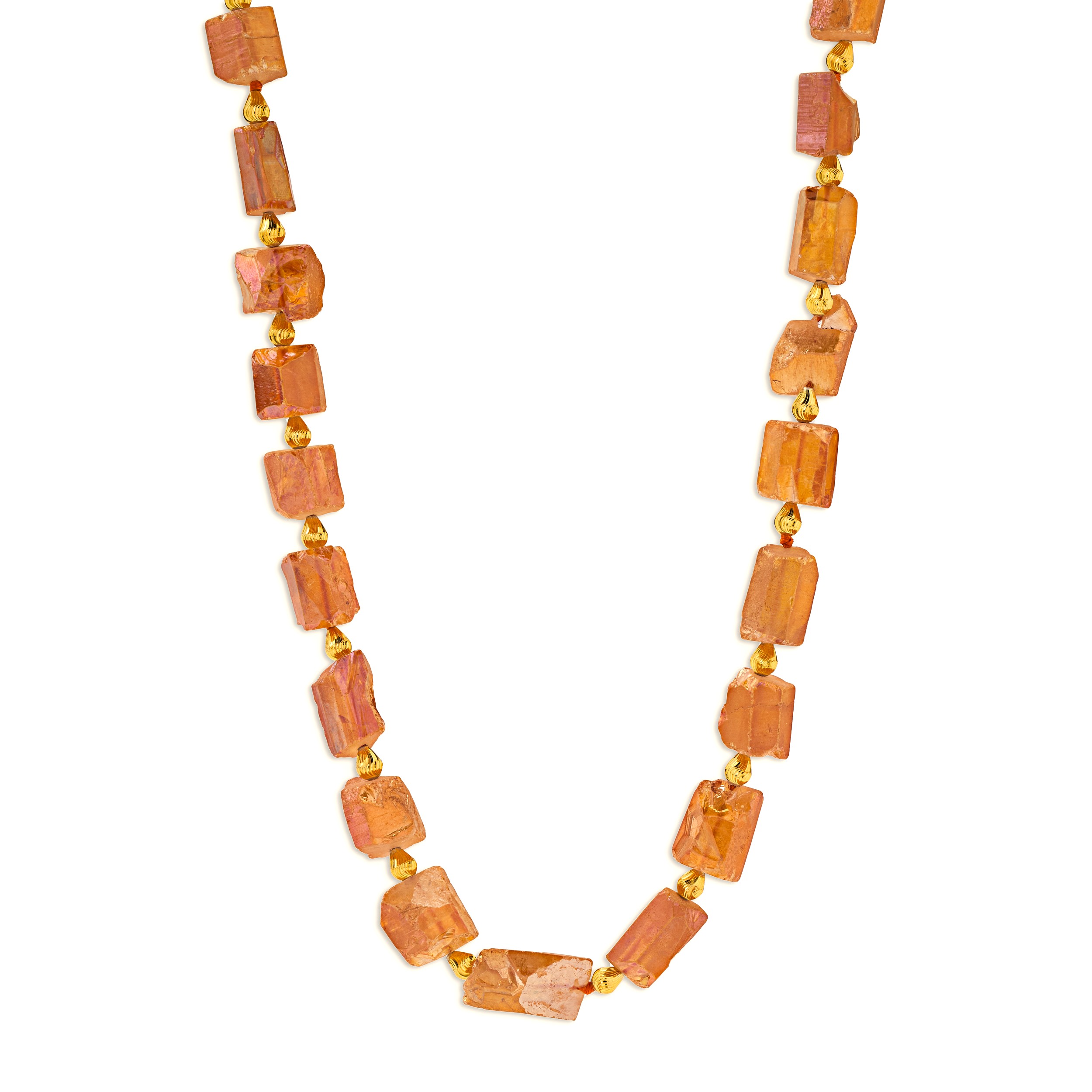 This gold-plated necklace is set with quartz semi-precious stones throughout, offering a shimmering, elegant look that catches the light beautifully.