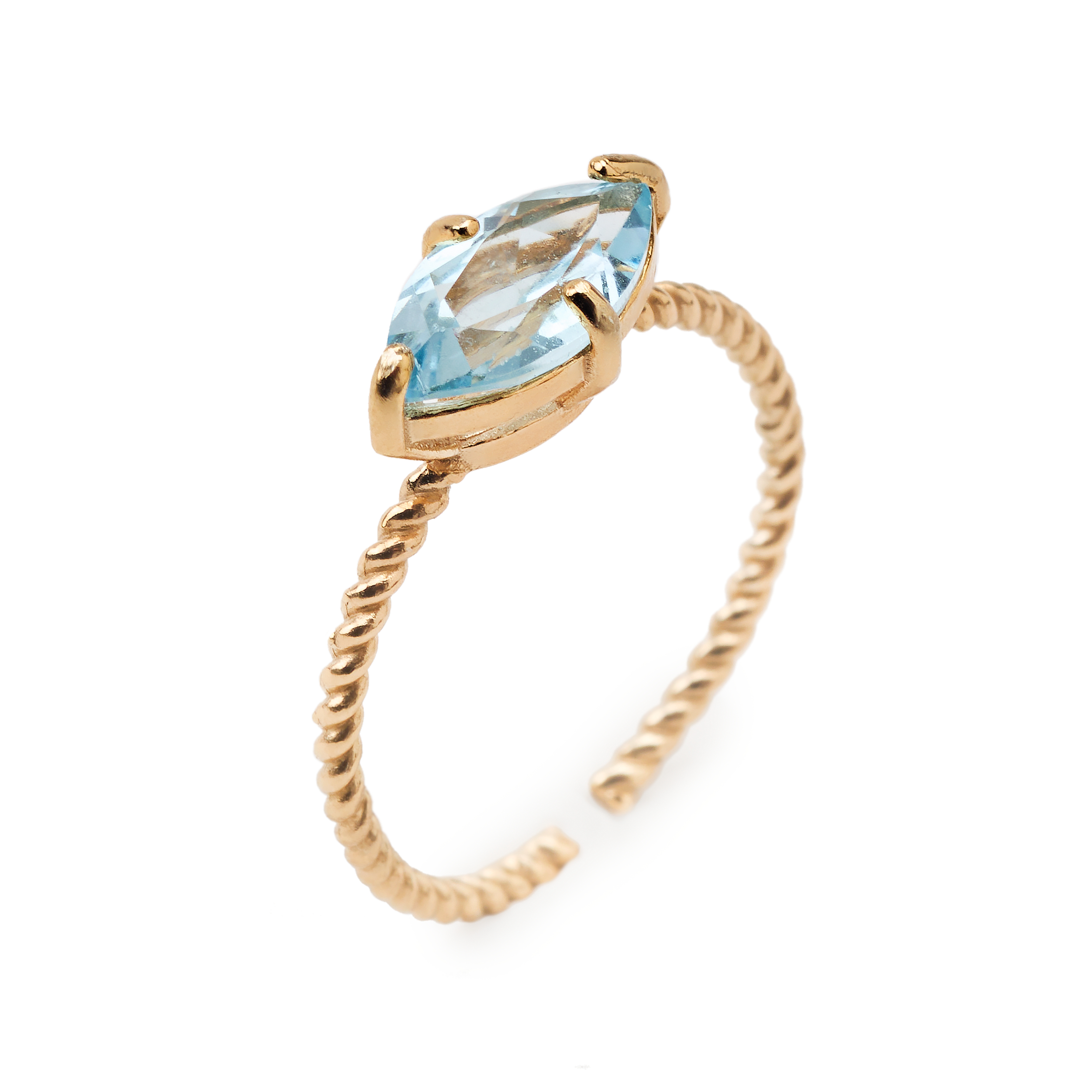 Categories: NEW IN, Petranova RingsA sleek gold-plated ring set with a brilliant blue topaz, its clear sky-blue sparkle adding a fresh, modern touch to the warm gold band.