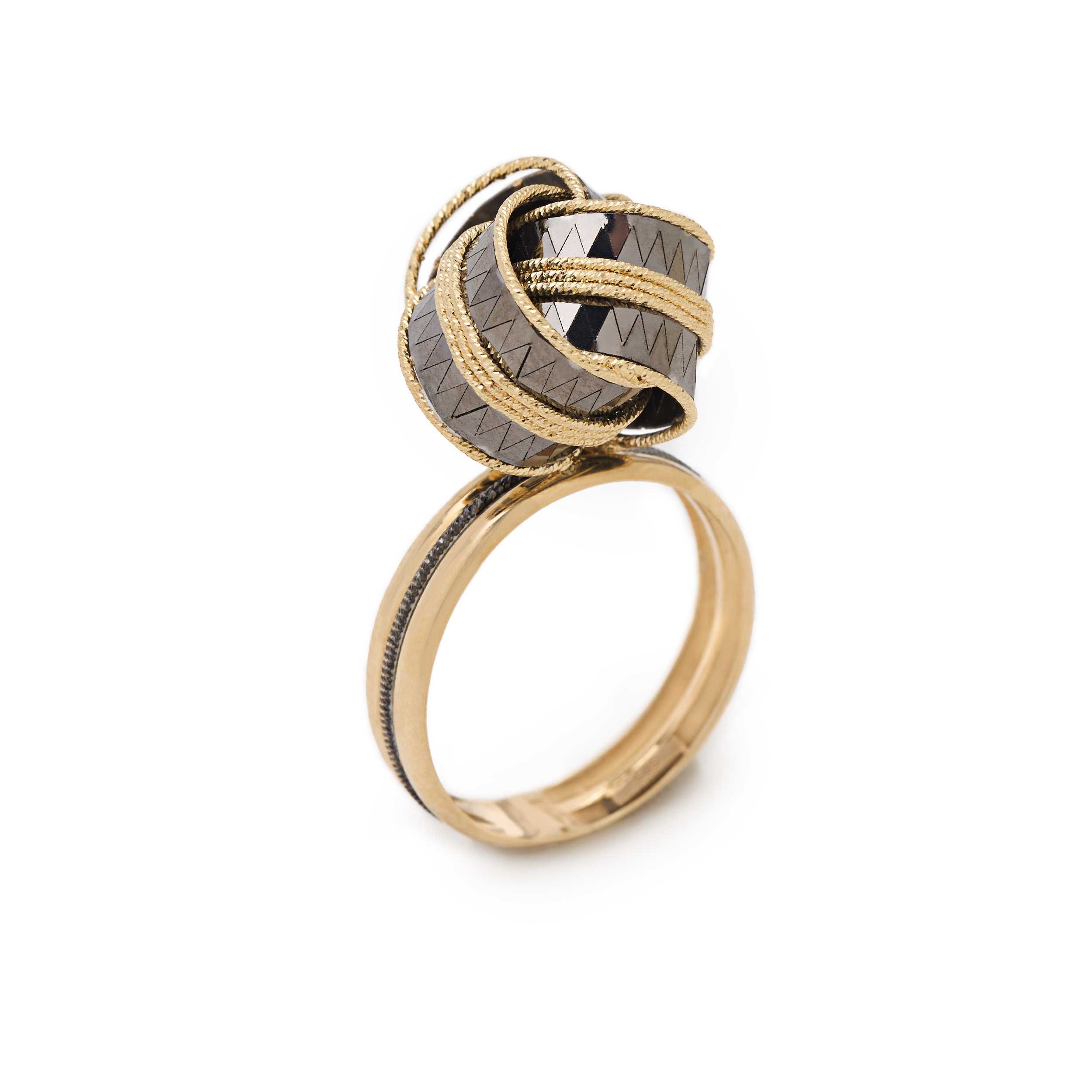 This 14k gold ring features a modern minimalist design with elegant lines.