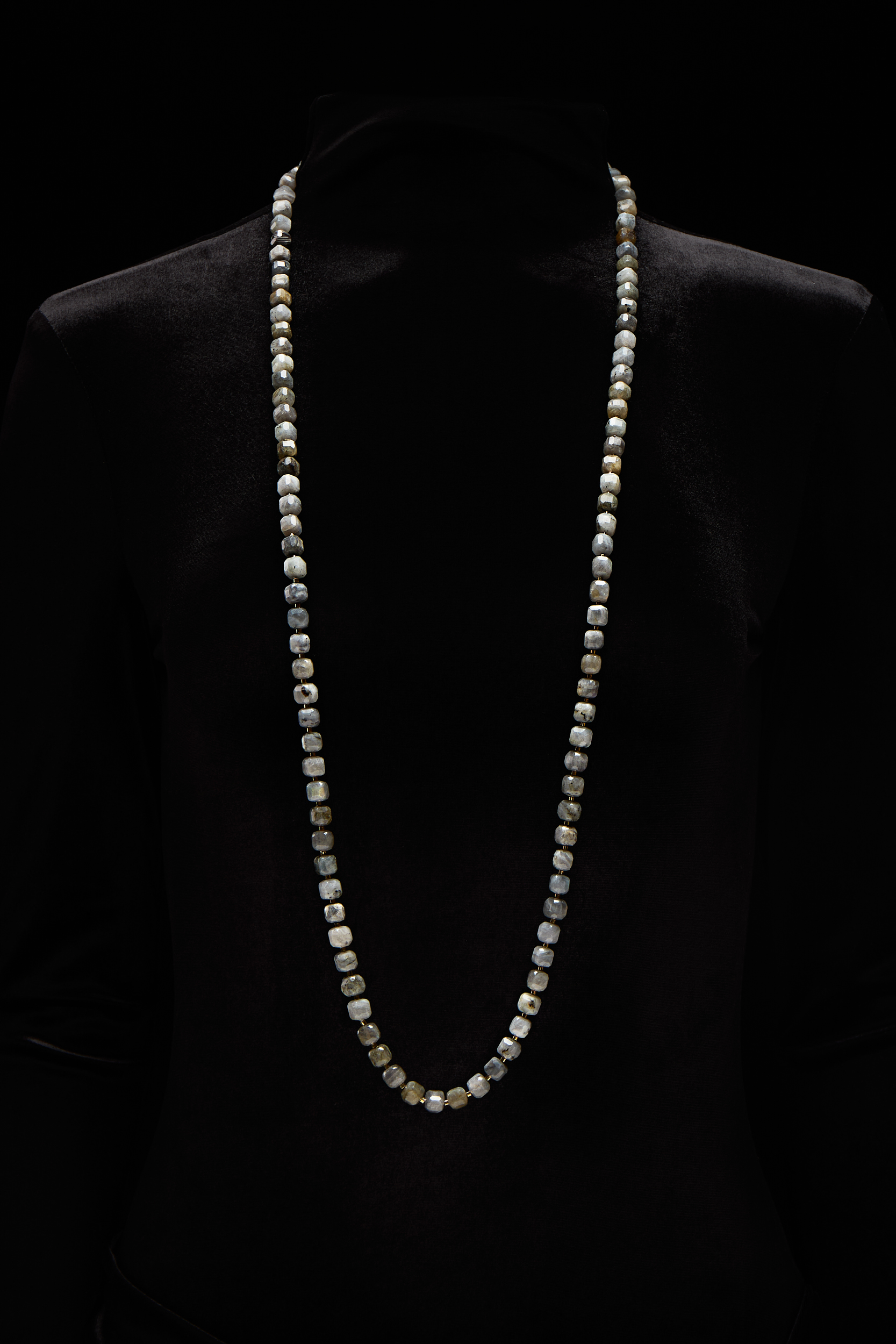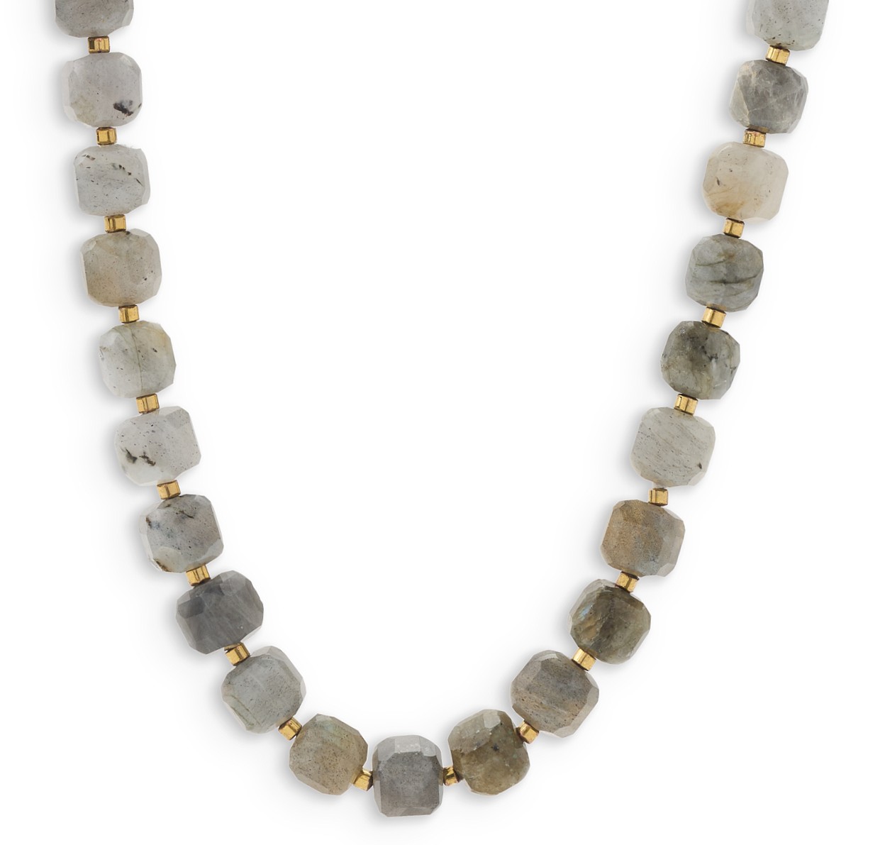 This gold-plated necklace features labradorite semi precious stones, showcasing their natural shimmer for an elegant and refined look.