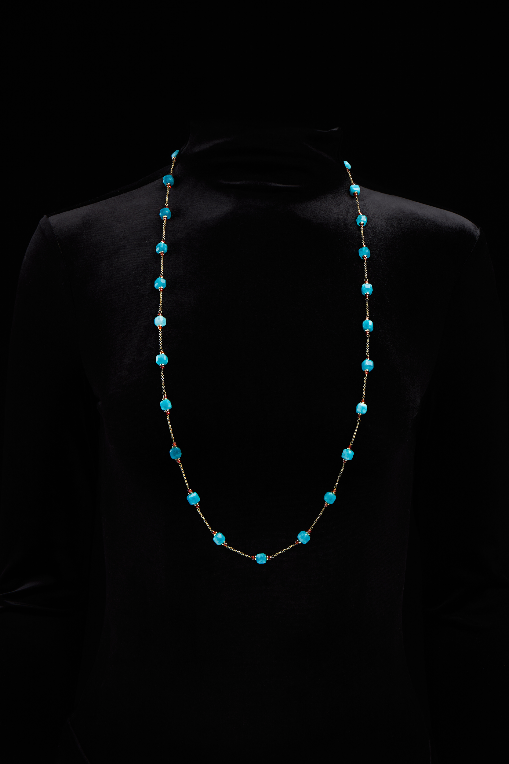 Categories: NEW IN, Petranova NecklacesThis gold-plated necklace features aquamarine stones and brown agate, offering a serene, elegant look with a soft blue hue and refined, natural sparkle.