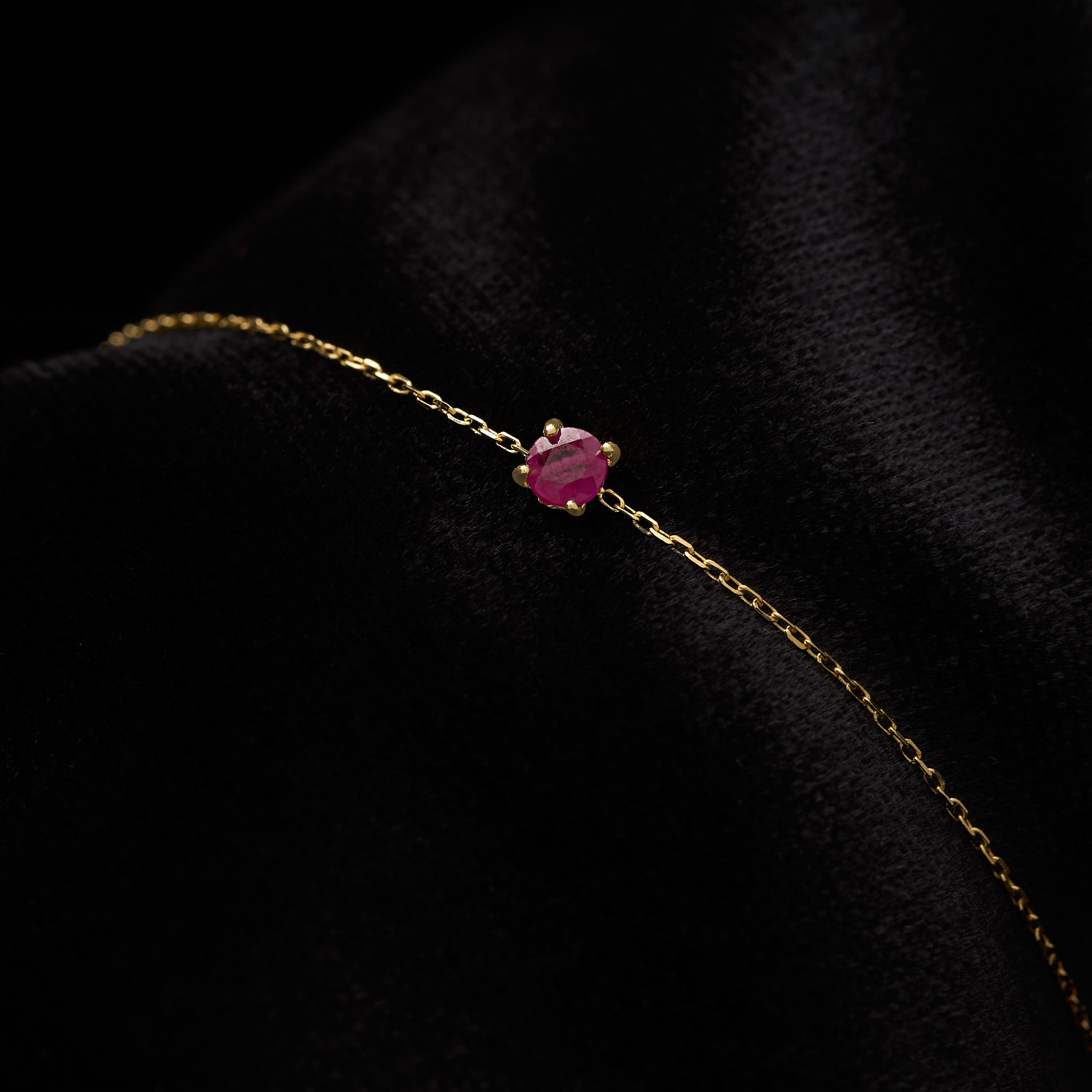 K18 gold bracelet, introducing a worm ruby at its center. Elegant and all-time classic, for every day occasions.